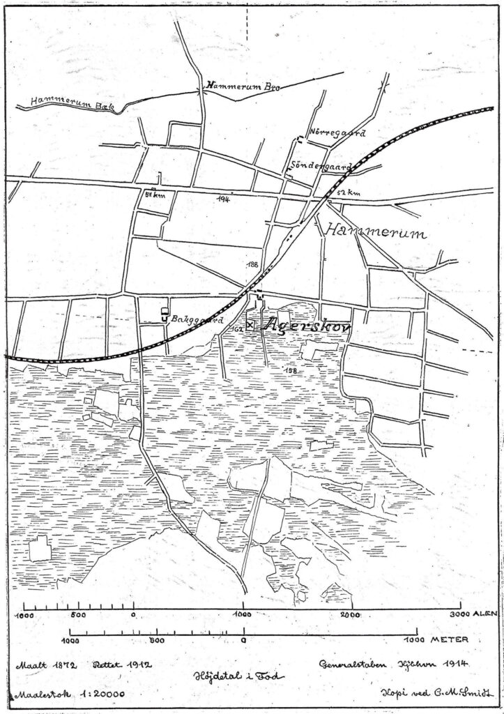 Den 17. oktober 1919 tog jeg fra Herning ud til Agerskov til den nævnte gård, hvis bygninger ligger ca. 450 meter sydsydvest for Hammerum station tæt op til bundlinjens sydøstre side med kun haven mellem jernbanen og gårdens stuehuse.